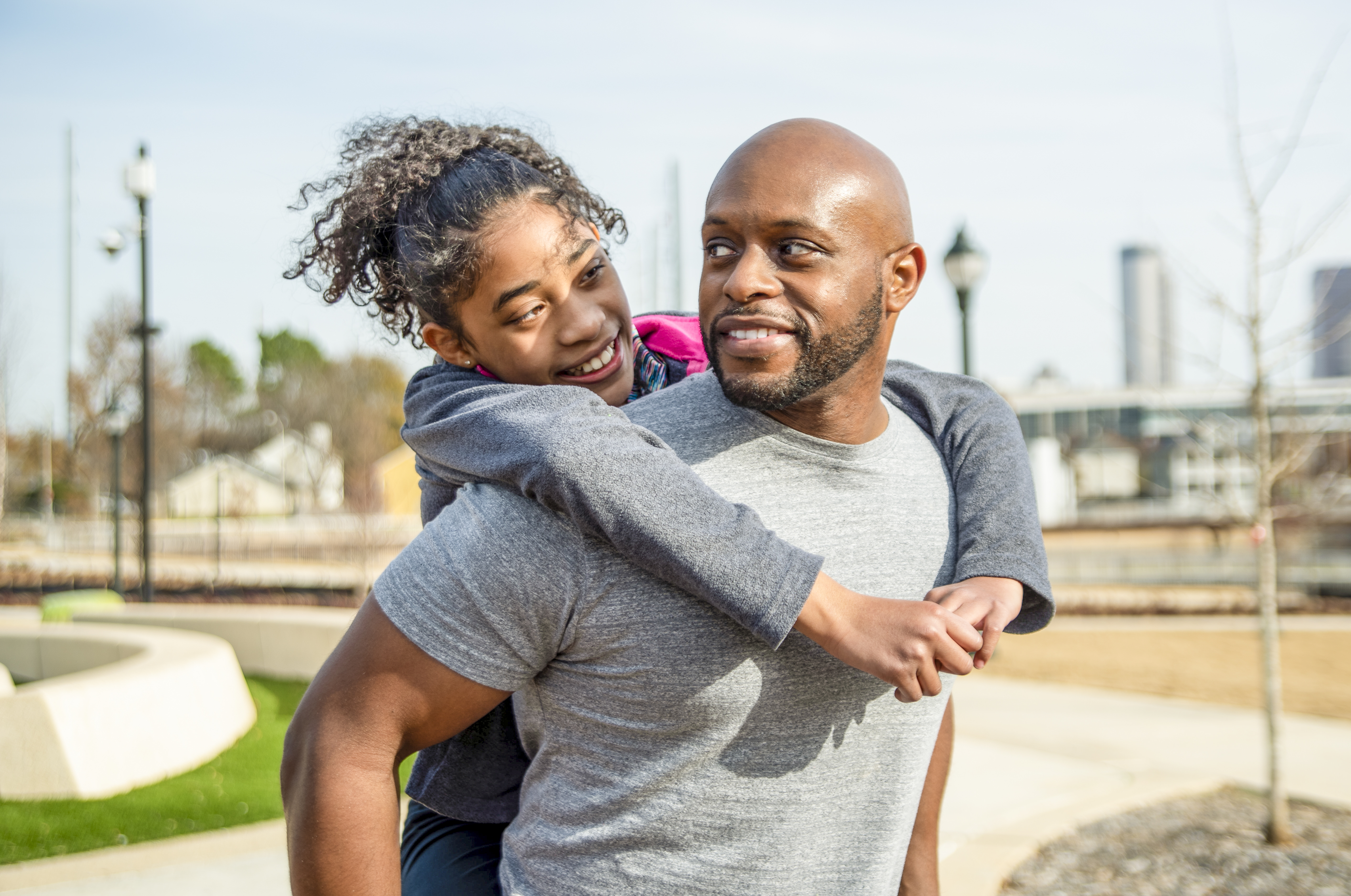 Adult and child at Cook Park, in the Vine City neighborhood of Atlanta, Georgia. This is a completed park but it shows this key green space being used by the community as it was intended