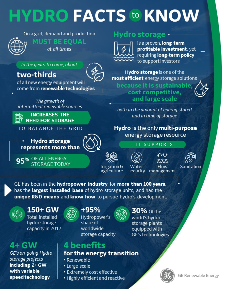 GE is a world leader in pumped storage plant equipment and supplies in-house capabilities not only for turbines and generators but also the full electrical balance of plant.